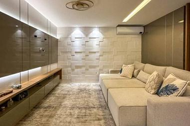🔹 Salas: ambientes amplos, com móveis sob medida, lustres e espelhos.