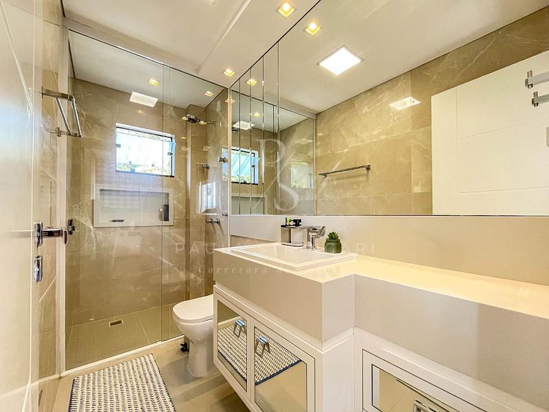 ✅ Inclui todas as persianas (blackout nos quartos), cortinas de tecido, persiana automatizada na janela com pé-direito duplo, móveis sob medida em todos os banheiros e box até o teto.