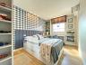 🔹 Suíte Casal: móveis sob medida (guarda-roupa, escrivaninha, criados-mudo e cama em MDF com gaveta extra), persiana em madeira e ar-condicionado.